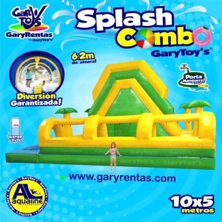 ¡Prepara la diversión más refrescante con nuestro espectacular Splash Combo Inflable Acuático, el centro de entretenimiento perfecto para tu próxima celebración! Este vibrante inflable es la solución ideal si buscas un servicio de renta de juegos acuáticos para transformar cualquier evento en una fiesta inolvidable. Nuestro Splash Combo está disponible para rentar y combina la emoción de un tobogán de agua con la diversi